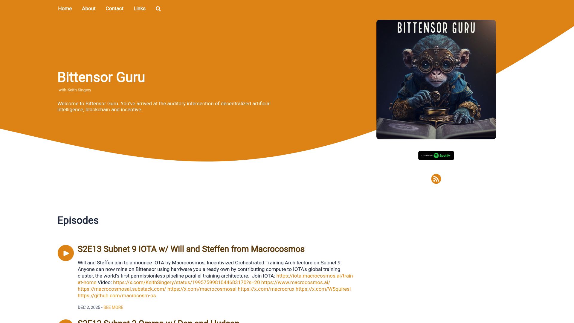 Hosted by Keith Singery, the Bittensor Guru offers weekly hour-long podcast episodes featuring subnet builders, validators, and core contributors within the network. It covers subnet launches, economic models, token emissions, and validator strategies, providing nuanced perspectives on decentralized AI and on-chain intelligence.